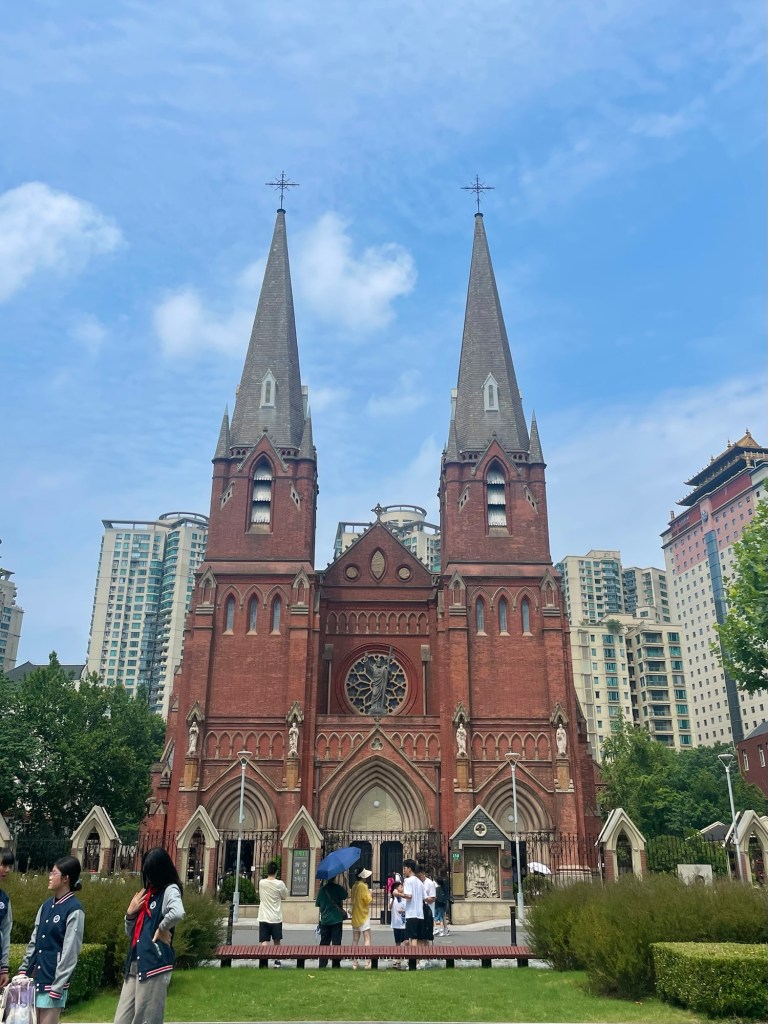 Wanting to explore the west of the city we took a train to Xujiahui. A large catholic cathedral with familiar looking spires was based there. Our attempt to go in was thwarted by Frankie’s shorts. Nearby there was a weather museum, stupidly we thought it wouldn’t be a popular attraction. As a security card popped out to tell us we couldn’t enter because reservations had to be made a week in advance, a man asked us if we needed help.