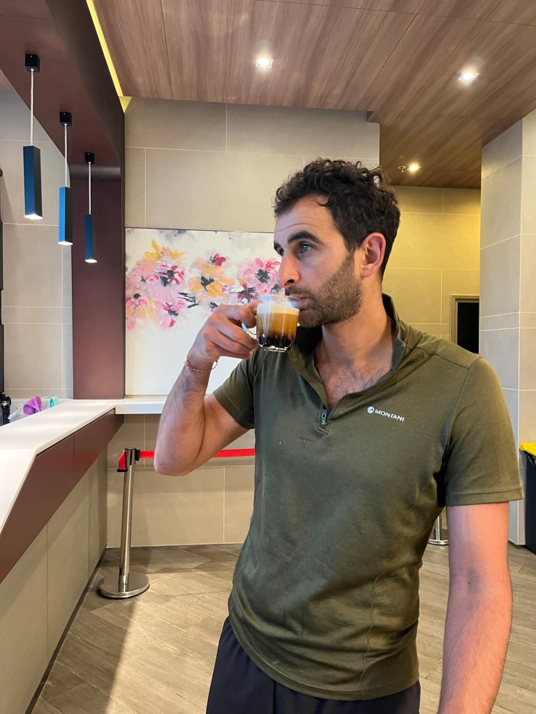 Endless pouring rain, rolling thunder and impossibly intense strikes of lightening water weren’t even the reason we hunkered down all morning. Frankie wasn’t feeling well and was sniffling a lot. Hong Kong had hundreds of 7-elevens selling oat coffees. Perfect, but the guy just poured the milk on cold. Tepid bleakdom.