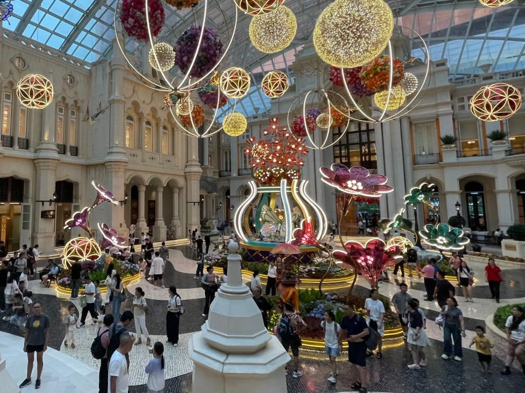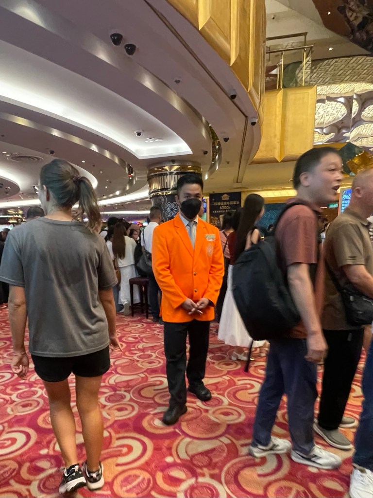 Though we contemplated a return to Cotai to see some more casinos we made do with those nearest to us. Wynn Palace was supposed to have a fun fountain that played music and fired water around. But after noon passed the scheduled show didn’t begin. Cancelled because of the windy impending shadow of the approaching typhoon.