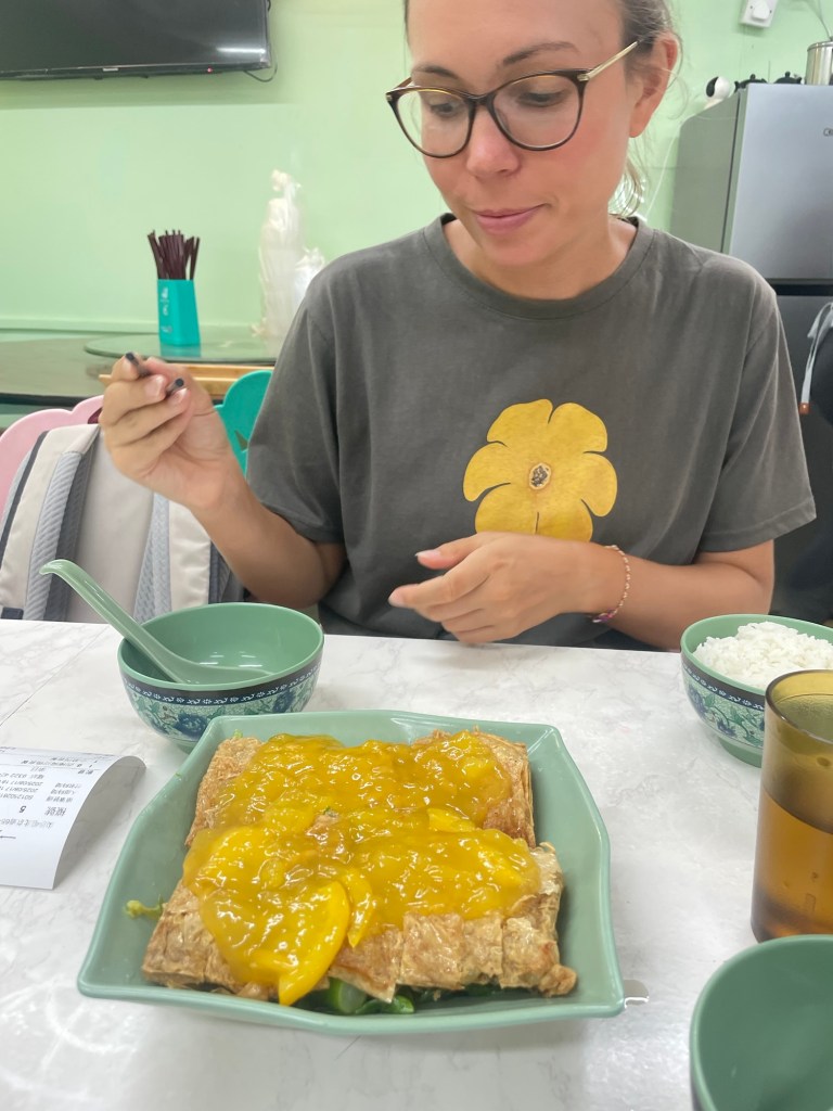 For our final dinner we went to a vegan restaurant called Yat Sum. Cheap and cheerful on the second floor of a large apartment block near Tsim Sha Tsui MTR station. Despite our best efforts we ended up with two very similar dishes. Lemon sauce covered fried tofu sheets, which we ordered and for some unclear reason the woman insisted on swapping half the bbq sauce for our wheat gluten with yet more lemon. Sadly the gloopy citrus tasted like it belonged on a cheesecake.